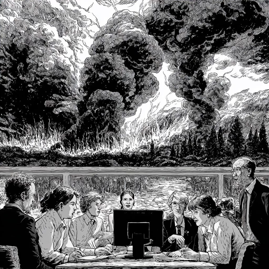 Despite all the hype and noise, this is not AI’s fault. AI accelerates what we were already doing. It makes achievement, measured in performance metrics, faster and more confident. It deepens our insulation from where decisions affect people, promoted to an emissary between leadership and reality. And it makes the process more self-contained and self-referential than any purely human system could be, because it optimises at speed and scale exactly what it has been told to optimise for, with no access to the situated, relational, risk-bearing judgement that might notice the larger game. This is not an AI problem; it is a people problem.